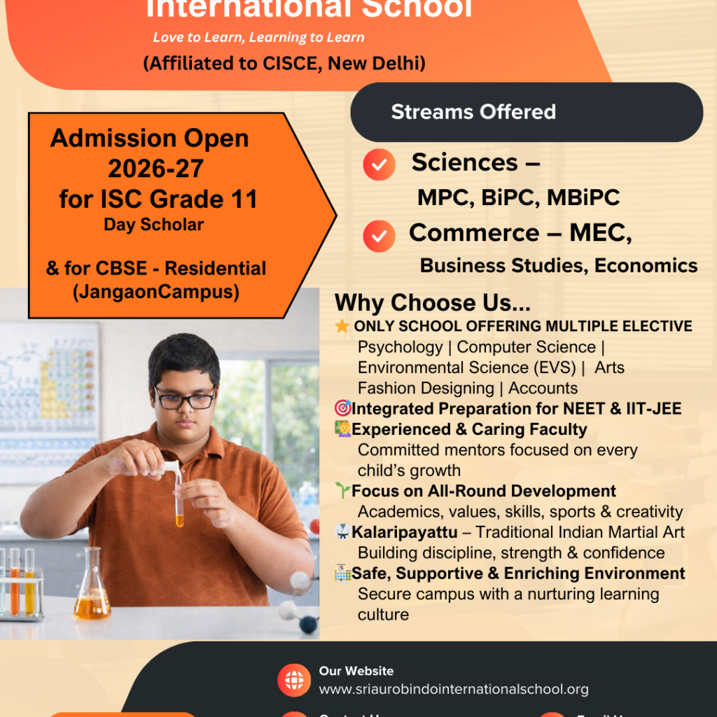 The school is implementing the Integral Education as envisaged by Sri Aurobindo and the Mother. It is located near Vidya Nagar Railway Bridge, Hyderabad.